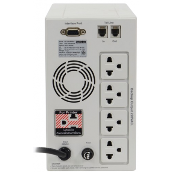 ชนิดของแบตเตอรี่ Sealed Lead Acid Maintenance Free, กำลัง : 1000VA/800W, Input: 220V ± 25%, Output: 220V ± 10%